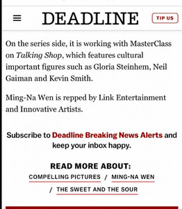 Ming-Na is the co-creator and the executive producer with Compelling Pictures on the food documentary series The Sweet And The Sour. On this documentary Ming-Na will take a celebrity guest on a journey of discovery of Asian and Asian American Pacific Islander (AAPI) community and culture and their relationship with the food.